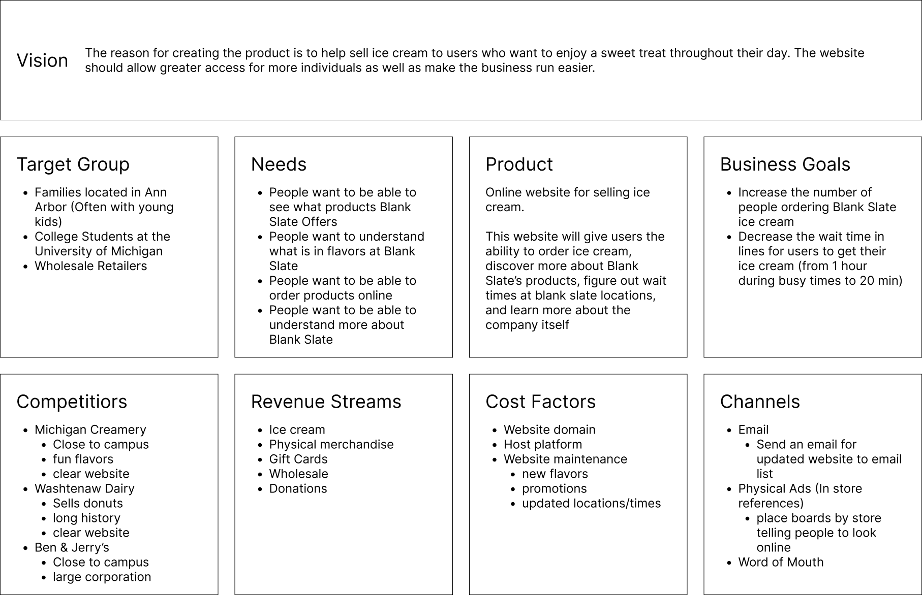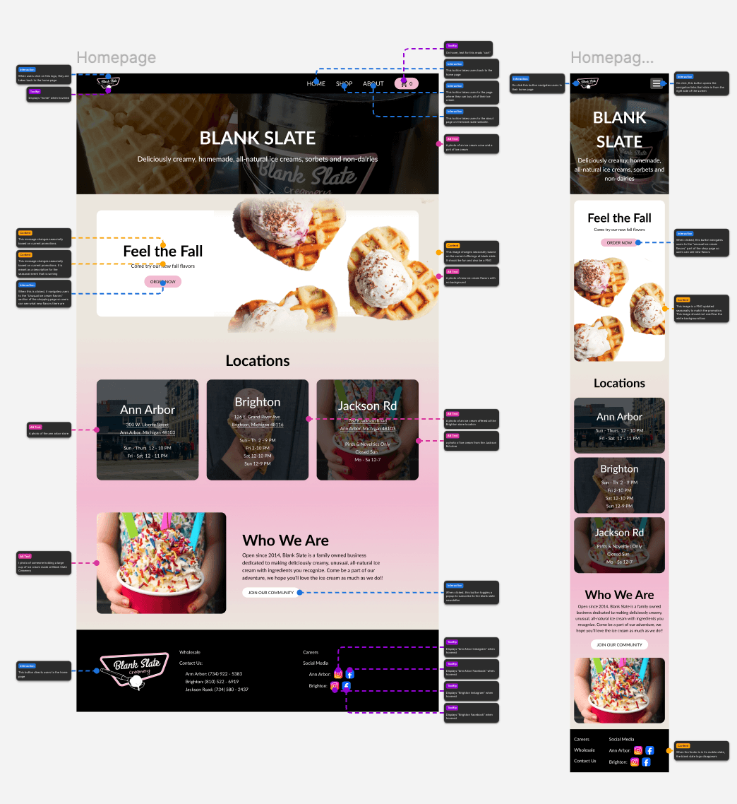 For this project, I was tasked with redesigning a website for a company local to Ann Arbor. Blank Slate is a creamery located in Ann Arbor known for its unusual ice cream flavors and dedication to making its own ice cream. On summer nights, you can often find the store with an hour long line to get some of its delicious ice cream.