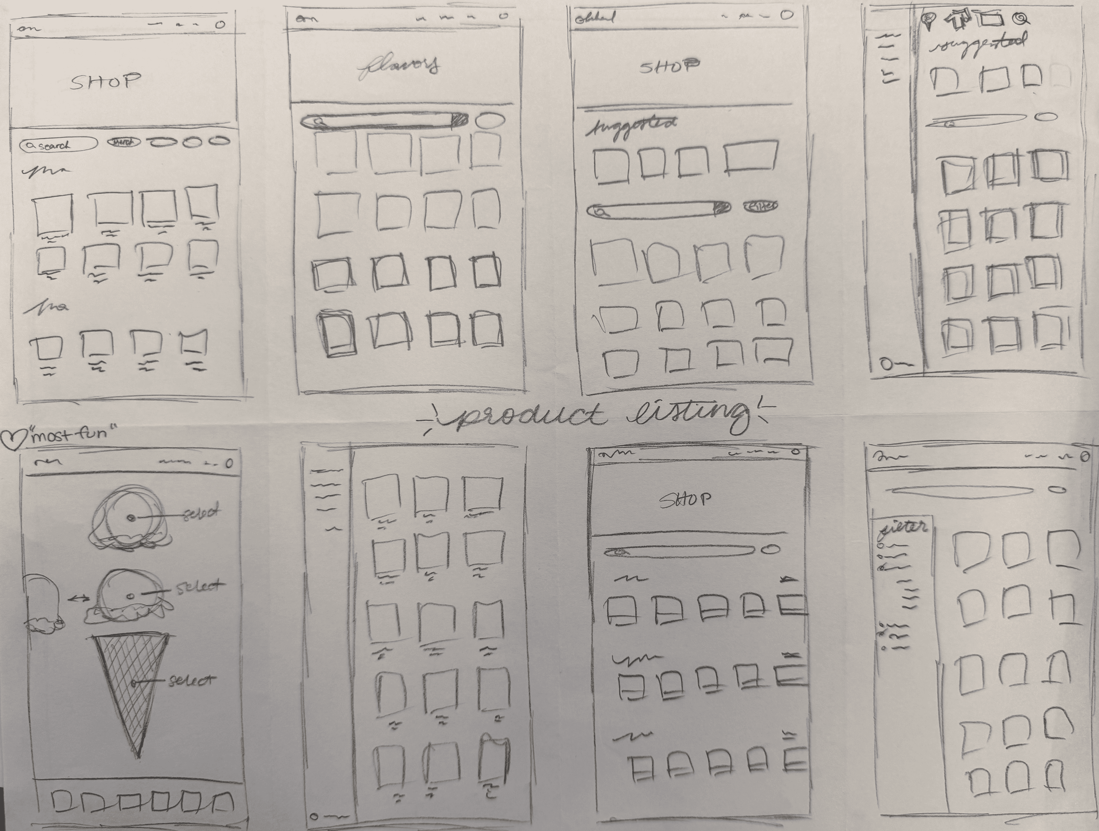I did a crazy 8s exercise to flush out my ideas, and decided on a flavor-first presentation.