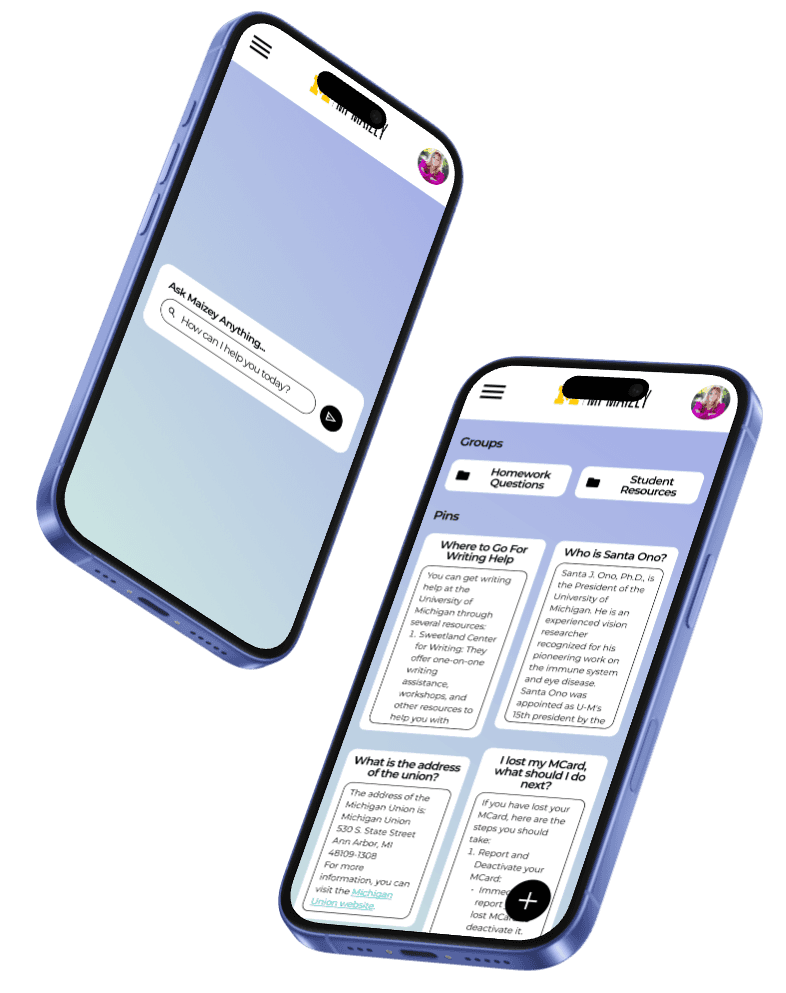 Mi•Maizey is a AI platform created by the University of Michigan to help students have quicker and more personalized answers to the questions they have around campus.
